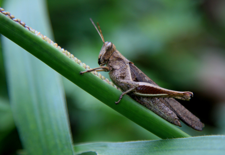 Because of their size and the powerful hind legs they need to jump, these insects are often confused with grasshoppers. The biggest difference between the two is that crickets are darker in colour and smaller than grasshoppers. Grasshoppers are usually 2-8 cm long. Grasshoppers also tend to be more conspicuously and brightly coloured than crickets.